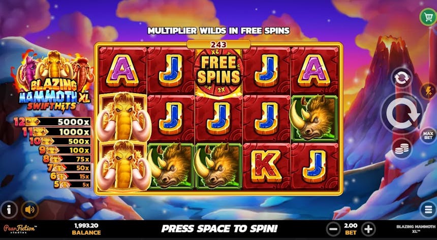 Tre simboli free spin possono dare una spinta quando si gioca alla slot Blazing Mammoth XL.