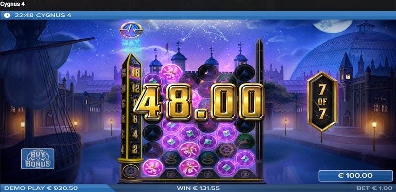 Iniziamo la nostra recensione di Cygnus 4 con una panoramica sulle caratteristiche principali. Si tratta di una slot altamente volatile, con una vincita potenziale di 50.000x per i giocatori più fortunati. I rulli possono essere fatti girare a partire da soli 0,20 euro a spin, con una puntata massima di 100 euro.