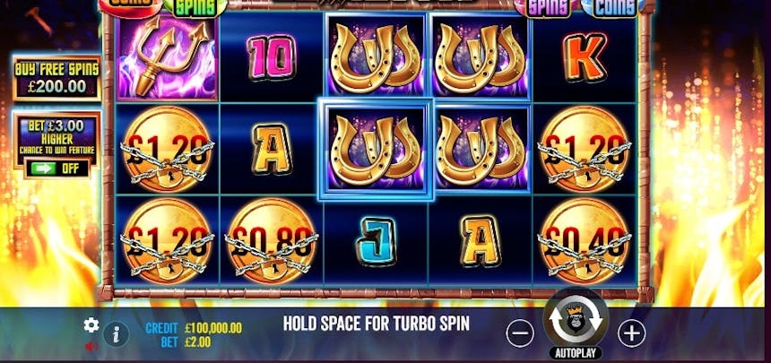 Quando le monete atterrano, noterete che hanno un valore fino a 2 volte la puntata. Se un jolly atterra contemporaneamente alle monete, si viene ricompensati con il valore delle monete. Il diavolo può lanciare palle di fuoco contro le monete e questo porta a vincite maggiori.