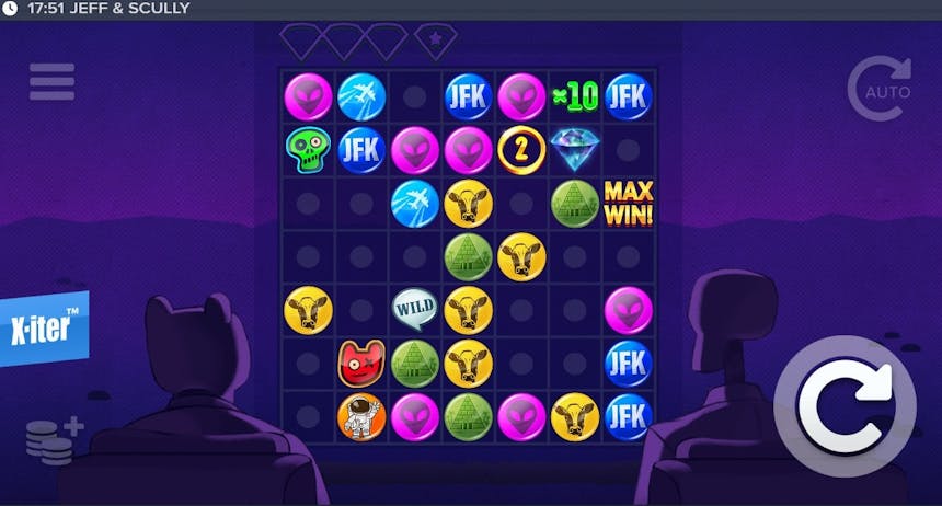 In questa recensione di Jeff & Scully, scopriamo subito che i giocatori son ritrovano catapultati in un regno che riecheggia il deserto del Nevada. L’atmosfera è sicuramente carica di mistero e di intrigo, anche grazie allo sfondo che sa come catturare tutta la sostanza di un mondo non convenzionale. L’ambientazione della slot, che come abbiamo detto ricorda i paesaggi profondi e segreti del Nevada, aggiunge uno strato di fascino inquietante, attirando i giocatori in una narrazione intessuta di elementi di cospirazione e curiosità.