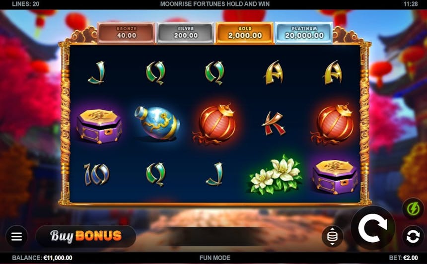 Con 20 linee di pagamento, la slot Moonrise Fortunes Hold & Win ha molti modi per vincere. Detto questo, si tratta comunque di un numero inferiore rispetto a quello di molti altri titoli concorrenti che presentano caratteristiche e meccaniche con centinaia, o addirittura migliaia, modi per vincere. La gamma di scommesse è invece un altro vantaggio. Significa che la partita si rivolge sia ai giocatori di alto livello che a quelli con un budget più ridotto. Con una vincita massima di 11.000 volte la posta in gioco, queste puntate possono portare a ricompense molto consistenti.