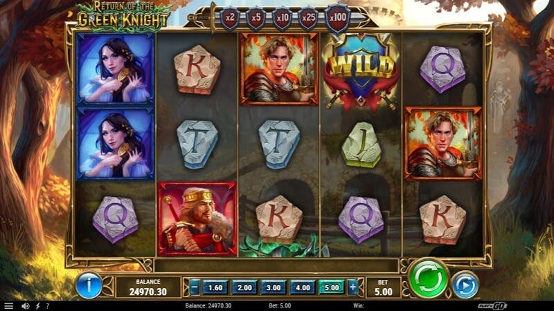 Return of the Green Knight è chiaramente basata sulla storia di Re Artù. Il personaggio principale che dà il titolo alla slot era considerato uno dei cavalieri più potenti del leggendario monarca. La sua favolosa battaglia con il nipote di Re Artù, Sir Gawain, servì a dimostrare il suo valore.