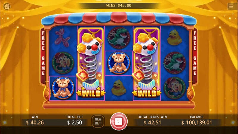 Anche i simboli sulla griglia sono in linea con il tema. Tra questi, una piccola anatra giocattolo, come quella che si può trovare nei tipici giochi Hook-a-duck, oltre a un peluche e a un palloncino a forma di animale. Tuttavia, il nome della slot deriva dal simbolo wild del gioco, un giocattolo con la testa di un clown che salta fuori da una scatola.