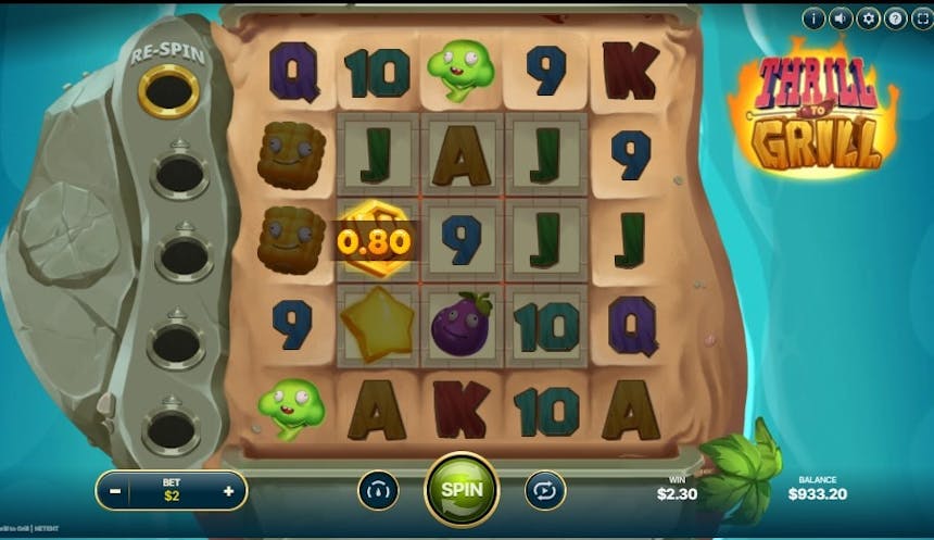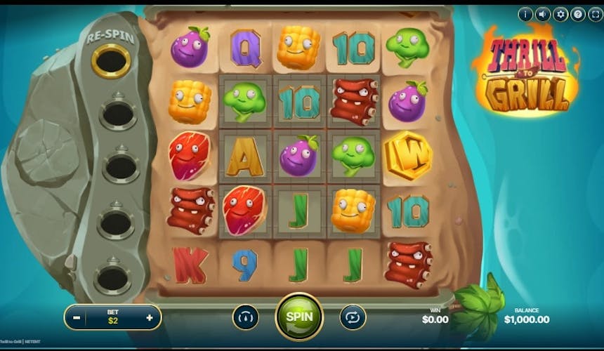Nella slot machine Thrill to Grill, i giocatori incontrano una serie di 11 simboli. La collezione comprende i tradizionali ranghi delle carte di basso valore insieme a simboli premium come broccoli, melanzane, mais, costine e succulente bistecche. Ad ogni simbolo è associato un valore di vincita diverso e questo crea diverse possibilità di guadagno che aggiunge livelli di eccitazione al gioco.