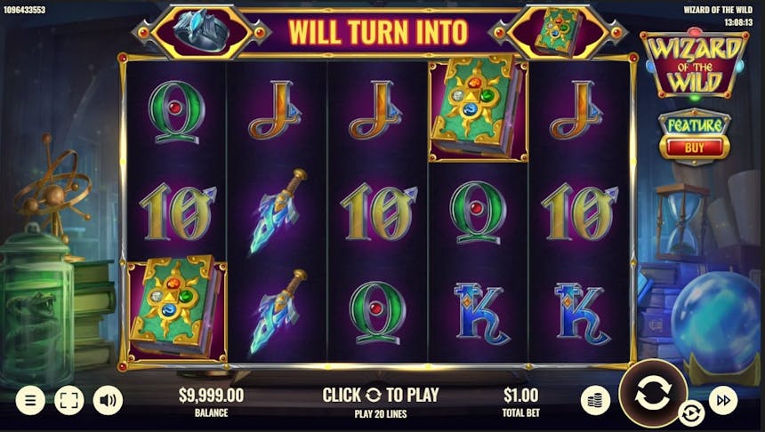 La slot machine Wizard of the Wild dispone di un libro di incantesimi che funge da wild. Ogni volta che il giocatore fa girare i rulli, nella barra degli incantesimi sopra la griglia appare un simbolo casuale. Supponiamo che il simbolo sia un 10. Se questo simbolo dovesse atterrare, allora si trasformerà nel simbolo wild al posto del libro degli incantesimi.